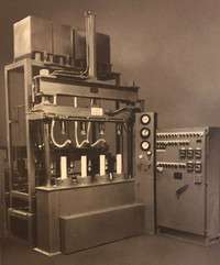 Bau der ersten automatischen isostatischen Trockenmatrizenpresse mit dem Namen LOOMIS PRODUCTS Isomatic®